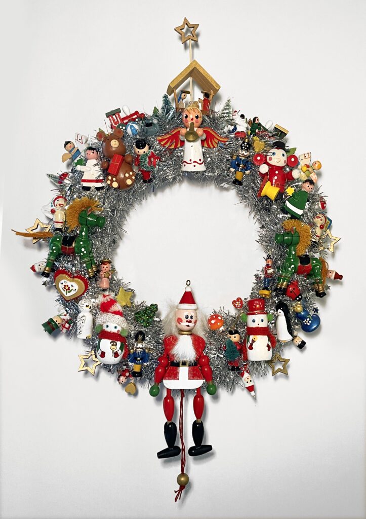 Vintage Kitsch Wooden Ornament Santa-2024 Christmas Wreath