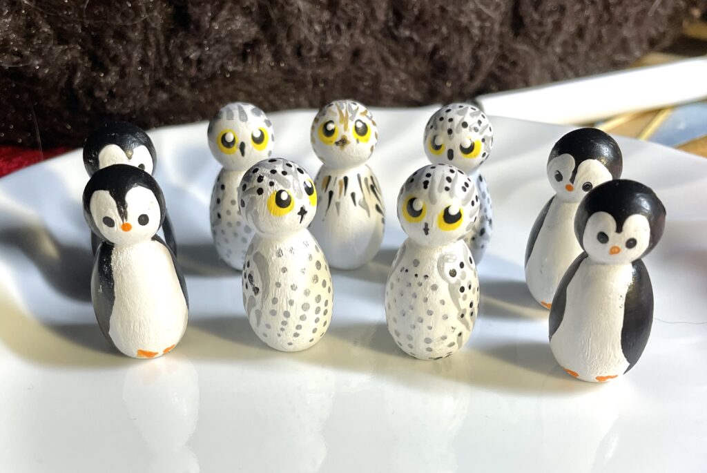 Owls and Penguins August 21, 2025 by Elke Edwards Experimenting with peg dolls, very fun and they work great on the wreaths!